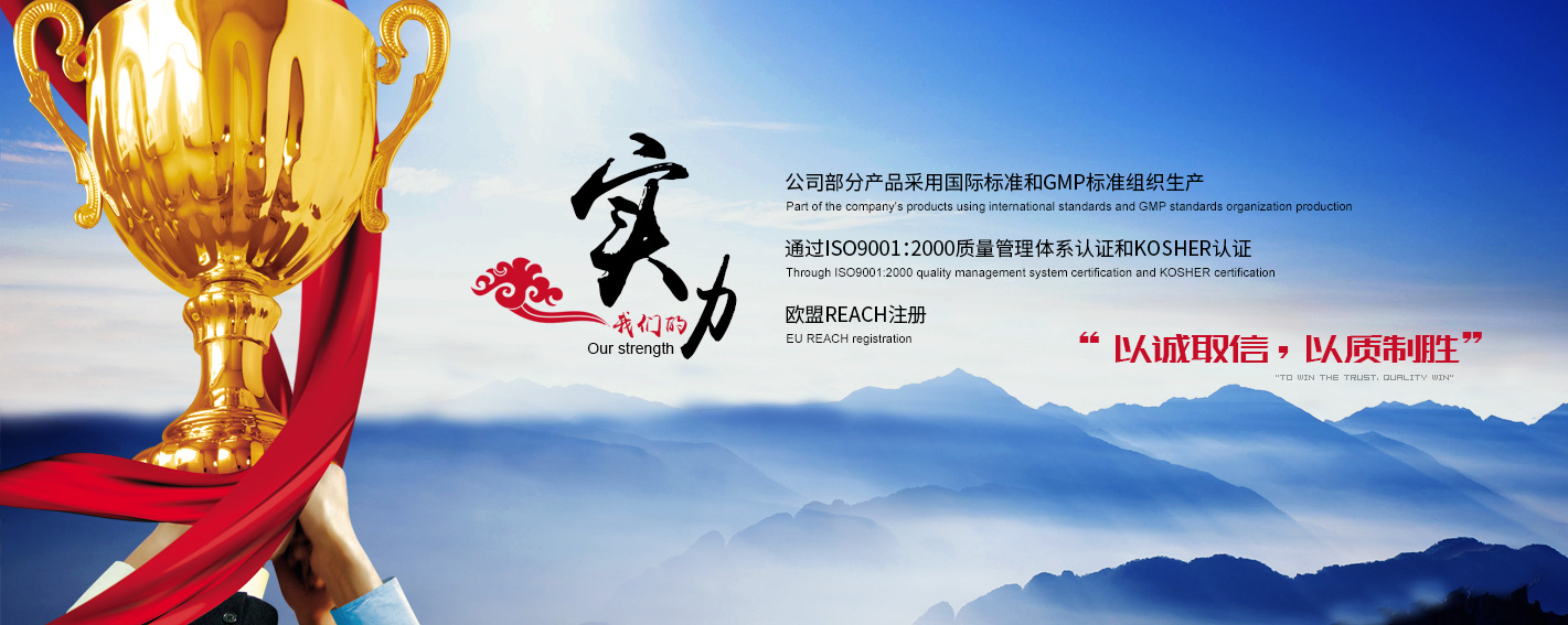 公司擁有現(xiàn)代化廠房、車(chē)間和物流倉(cāng)儲(chǔ)設(shè)施,配有先進(jìn)的生產(chǎn)設(shè)備及檢測(cè)儀器。公司部分產(chǎn)品采用國(guó)際標(biāo)準(zhǔn)和GMP標(biāo)準(zhǔn)組織生產(chǎn),并通過(guò)ISO9001:2000質(zhì)量管理體系認(rèn)證,歐盟REACH注冊(cè)。